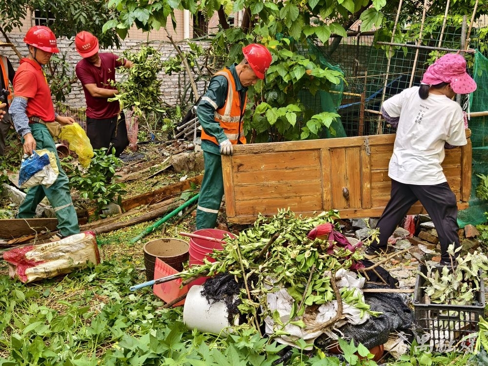 “这次支援东乡村,重点是清理闲置地块的杂草杂物、卫生死角和积水容器。走到一个地方,就要清理一个地方,确保不留死角。” 区环卫公司支援东乡村的领队雷何杨介绍说。记者在现场看到,无论是内街小巷,还是闲置地块,经过番禺城管公司支援人员和当地干部群众的辛勤劳动,环境卫生得到明显改善。